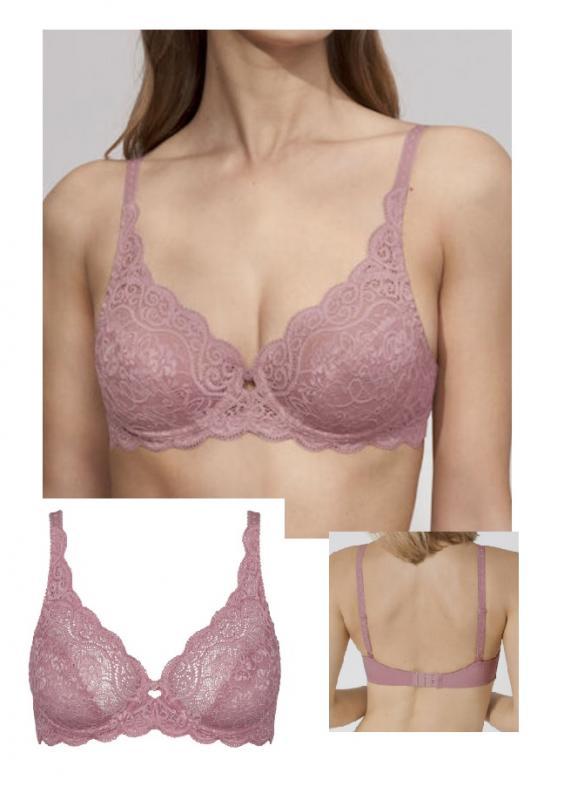 Sutien din dantela si broderie, cu armatura, cupe simple fara burete, bretele ce pornesc direct diin cupa cu un croi special menit sa asigure sustinere si confort pana la cupe si circumferinte mari.