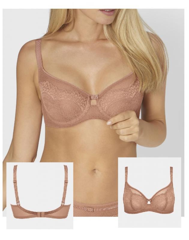 Sutien elegant si feminin, cu armatura si cupe simple neburetate, din dantela si broderie, o croiala care impreuna cu bretelele asigura sustinere si confort.