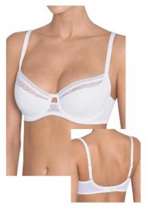 Sutien Triumph cu armatura si cupe din burete usor, care permite trecerea aerului astfel incat pielea sa respire normal. Are o aplicatie din broderie pe suprafata cupei, punte inalta care ajuta la o sustinere suplimentara si la crearea unui aspect foarte feminin si delicat.