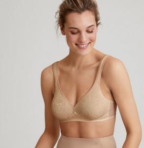 Sutien Triumph clasic, fara armatura, elegant si deosebit de feminin prin irizarile de pe cupa, bretele late pentru sustinere si confort.