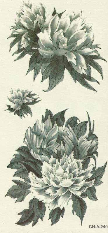 Tatuaj temporar ce contine 3 trandafiri in alb si negru de diferite dimensiuni, potrivit aplicarii pe umar.