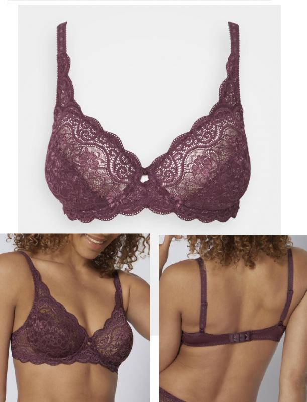 Sutien din dantela si broderie avand cupe cu armatura, fara burete sau adaosuri, cu o cusatura oblica ce asigura atat sustinerea greutatii sanului cat si o asezare foarte frumoasa. Bretelele devin mai late pe masura ce crestem dimensiunea circumferintei sau a cupei.
