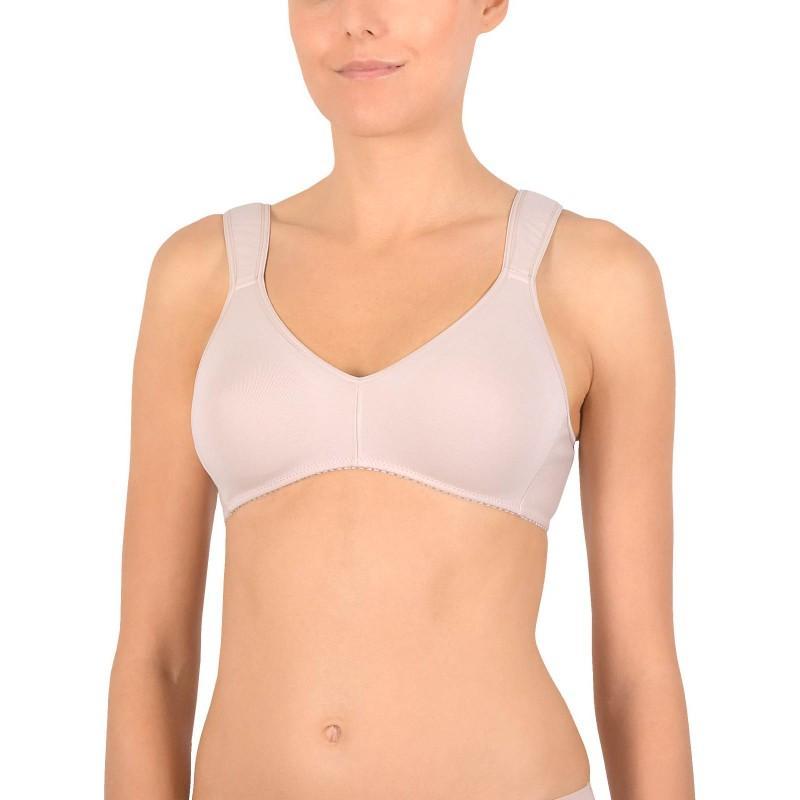 Bustiera sport Naturana, pentru activitati usoare cu bumbac in proportie de 90%. Cupele sunt fara cusaturi, fara armatura, captusite iar banda de sub piept agigura confort si sustinere. Ideal pentru gimnastica si yoga