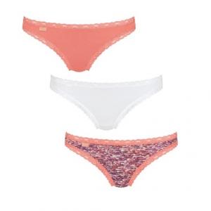 Set 3 perechi chilot Sloggi by Triumph croiala braziian (cat este de decoltat in fata atat este si in spate). Un material delicat si foarte placut la purtare, continut de 95% bumbac, cu terminatie de broderie fina la partea din talie.