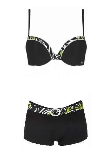 Costum de baie din 2 piese: sutien cu armatura si push-up, bretele reglabile, slip croiala short, material cu proprietatea de uscare rapida.