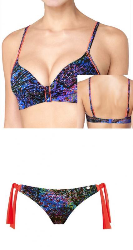 Costum de baie din 2 piese: sutien fara armatura, cupe captusite cu burete usor, material cu proprietatea de uscare rapida, slip ajustabil in ambele laterale, croiala clasica la spate.