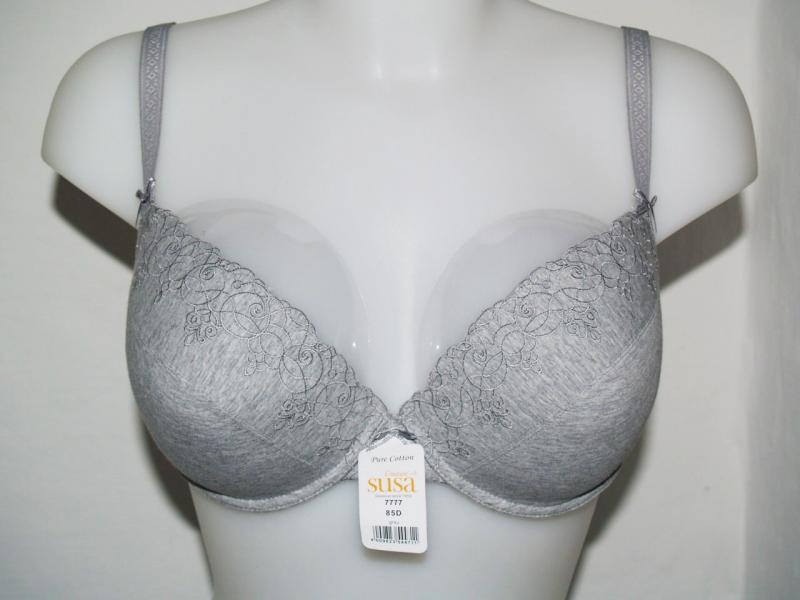 Sutien Susa (producator german de lenjerie intima cu experienta de peste 150 de ani) cu armatura, cupe captusite cu un continut de 52% bumbac. Broderia de pe partea superioara a cupelor si pe puntea dintre acestea, alaturi de accesoriile in forma de fundite ii confera o nota de exclusivism.